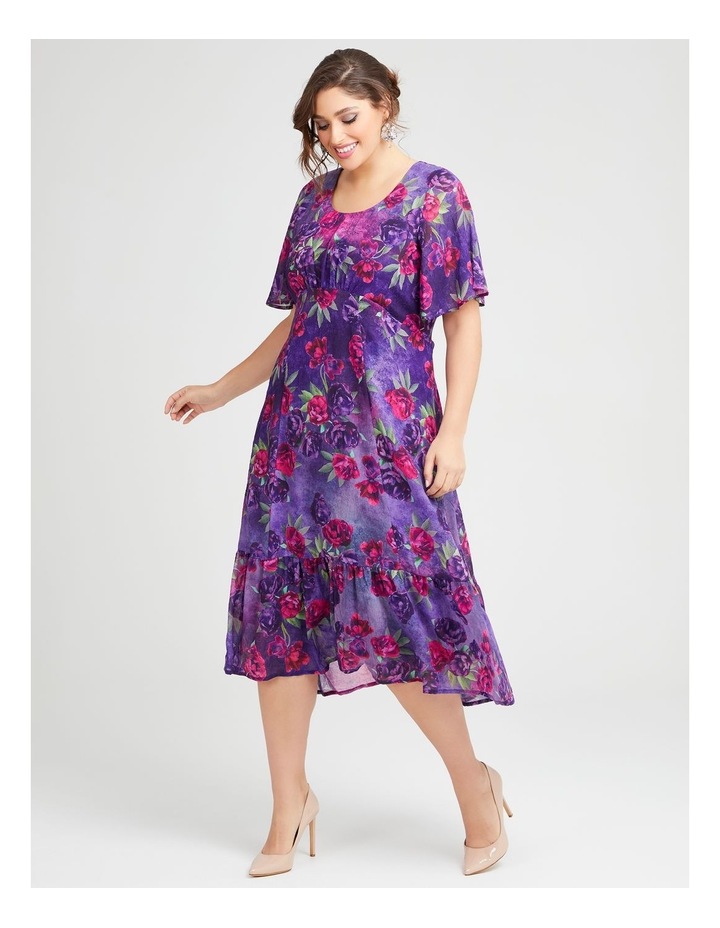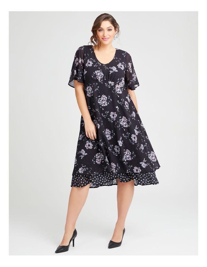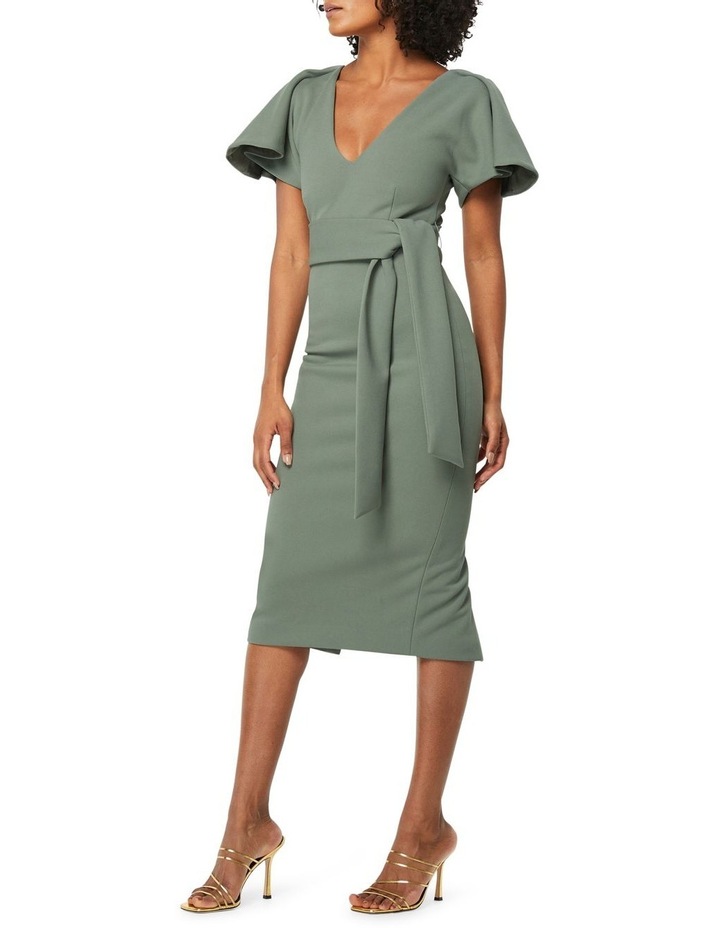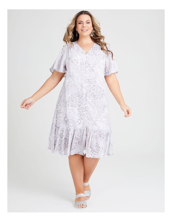 - Frill Sleeve Side Splits Dress Grey/Charcoal